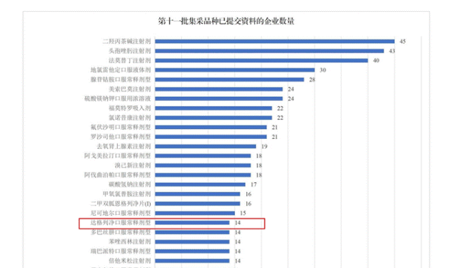 图表来源:国家医疗保障局《第十一批药品集采竞争格局显现国家医保局提示投标企业科学核算成本、理性报价》-本图显示14家及以上,具体见原图