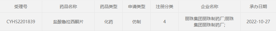 另外除丽珠集团外,据药融云数据显示,还有常州制药、齐鲁制药、重庆药友制药、辰欣药业、石家庄四药等多家药企也向CDE递交了盐酸鲁拉西酮片的仿制药申报上市申请,均在审评审批中。