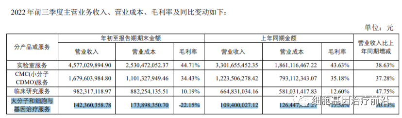 (1)实验室服务:前 9 个月实现营业收入 45.77 亿元,同比增长38.63%。