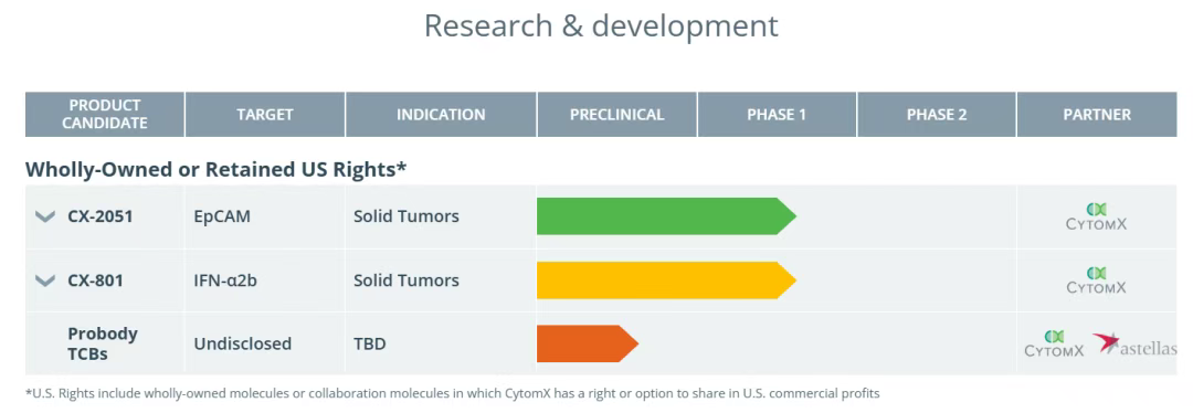 CytomX是一家临床阶段,专注于肿瘤学的生物制药公司。该公司正在开发一类基于Probody®技术平台的新型研究性抗体疗法,用于治疗癌症。CytomX与AbbVie,Amgen,Astellas和Bristol Myers Squibb建立了战略药物发现和开发合作,CytomX临床阶段的管线包括针对以前无法药物靶标的潜在一流候选产品。