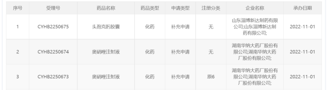 11月1日,CDE共受理了4个药物一致性评价补充申请,分别为: