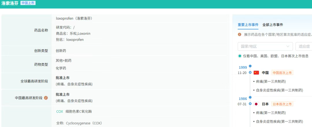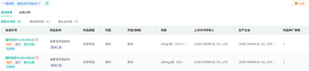 洛索洛芬钠贴剂是一种非甾体抗炎药(NSAID)的外用剂型,主要用于局部消炎镇痛,适用于缓解肌肉、关节或软组织的轻至中度疼痛(如肌肉劳损、关节炎、扭伤等)。其原研企业为LEAD CHEMICALCO.LTD,销售公司为第一三共。