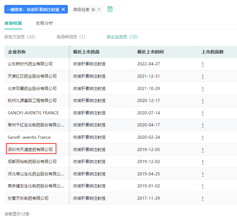 依诺肝素钠注射液国内获批情况(按企业浏览)