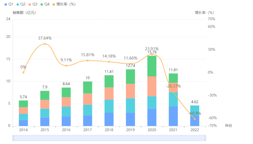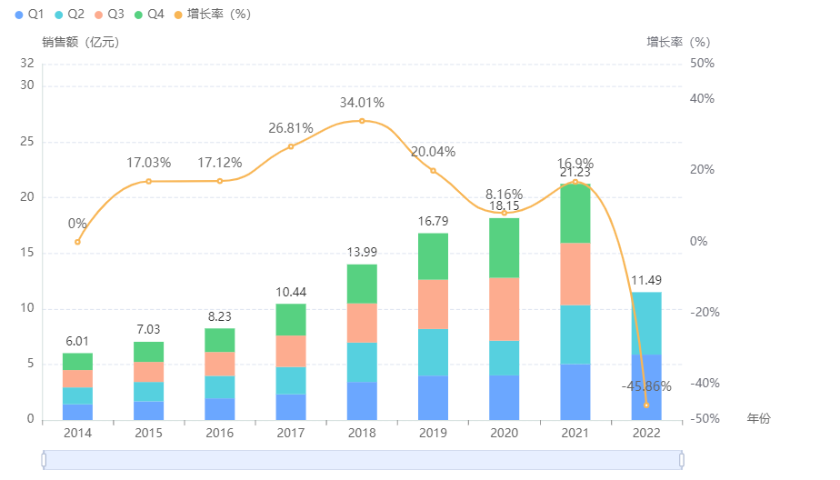 缬沙坦氨氯地平片(I)原研由诺华研发,适用于缬沙坦单药治疗或者氨氯地平单药治疗未能充分控制血压的患者。据药融云统计,缬沙坦氨氯地平片(I)近年来在我国院内市场的销售峰值超15亿人民币,2021年有所下滑,其中诺华制药(74.83%)为市场主力生产企业,之后依次为花园药业(15.37%)、恒瑞医药(6.19%)、百奥药业(3.6%)等。今年前2个季度的销售情况也不太理想,预估全年销售额在9亿元左右。