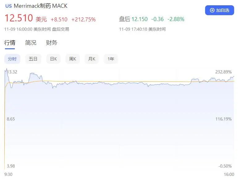 Merrimack在多次尝试获得一种药物失败后于2019年关闭了运营。然而,此次Ipsen发布消息后,令此家快倒闭的生物技术公司可能获得大笔资金。周三上午开市时,仍以空壳公司的形式交易的Merrimack股价上涨了两倍多,从周二的收盘价每股4美元上涨至每股12.60美元以上。