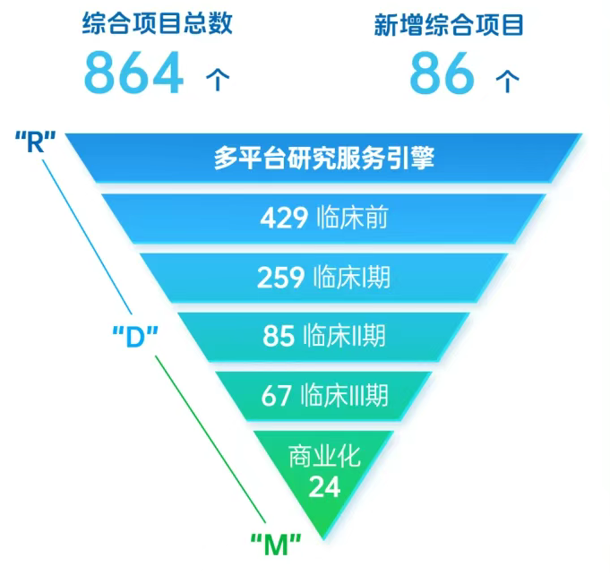 报告期内,公司新增86个综合项目,使总数达864个,历史新高,其中新增项目超过一半项目来自美国。新增项目ADC和双抗占比70%,成为核心驱动力。