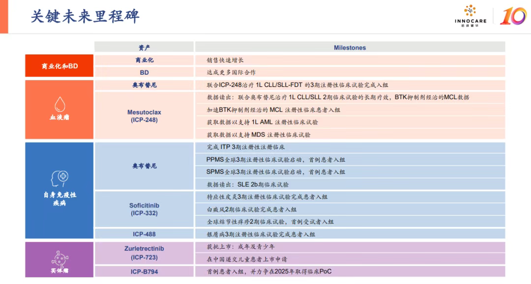 回顾诺诚健华的十年发展历程,可谓是在政策与资本双轮驱动中实现跨越。公司成立于2015年,恰逢药审改革启动之初,由崔霁松博士与施一公院士联合创立。伴随资本市场对biotech企业上市的支持,诺诚健华于2020年在港交所成功上市,2022年登陆科创板,2023年顺利摘“B”,至2025年更迎来业绩与研发管线的双重爆发,持续打造出多个爆款产品。