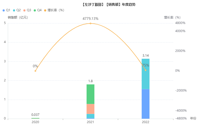 据药融云查询,继健康元之后,一直无其他企业获批生产左沙丁胺醇,直至2022年,才陆续有多家企业过评。2022年至今,已累计有南京恒道医药、扬州中宝、瑞多仕(武汉)制药、四川普瑞特药业、江苏长泰药业和扬子江药业等6家企业获批生产该品种,仿制药视同通过一致性评价,扎堆之势初显。