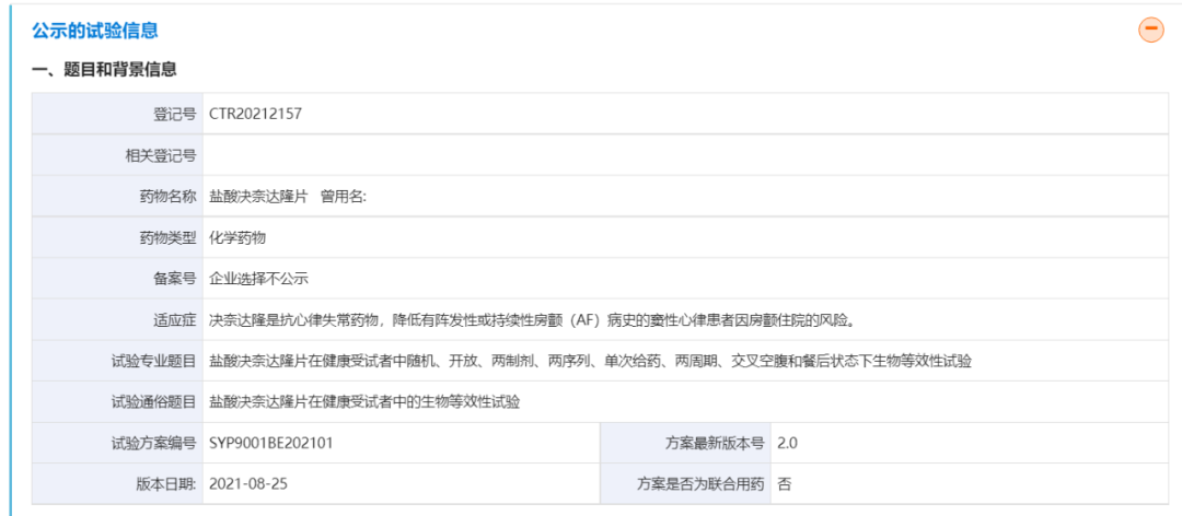 药物临床试验登记与信息公示平台显示,石药集团欧意药业完成了盐酸决奈达隆片在健康受试者中的生物等效性试验。