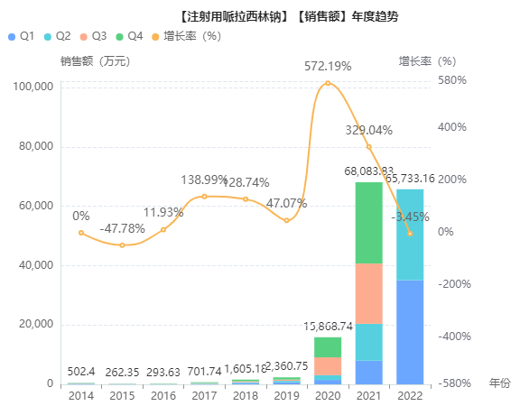 11月17日,NMPA发布最新一批药品批准证明文件送达信息,其中,瑞阳制药的注射用哌拉西林钠斩获该品种国内仿制药首家过评。据药融云统计,该亿元青霉素类抗生素近年来市场出现急速扩张,今年尤为明显,2022年H1院内销售额大涨222%!