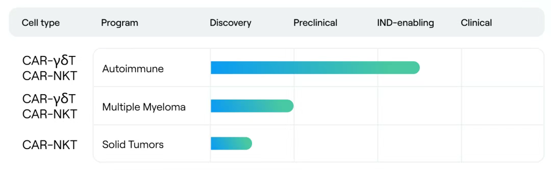 其核心ACUA平台通过诱导多能干细胞(iPSC)或造血干细胞(HSC)分化,批量制备靶向肿瘤的 CAR-iNKT 细胞(恒定自然杀伤T细胞),旨在兼顾疗效、安全性与规模化生产。依托ACUA平台,Appia Bio可从单一供体造血干细胞在体外扩增出万亿级恒定自然杀伤T细胞(iNKT),无需基因编辑即可批量生产高抗肿瘤活性的CAR-iNKT细胞,显著降低传统自体CAR-T的时间与成本。