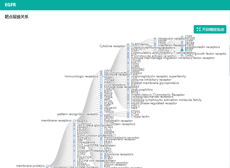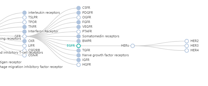 通过药物靶点的层级关系图,可以看出,EGFR的下层靶点还包括HER2/HER3/HER4等。