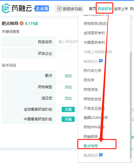 想要了解全球靶点药物研发格局,但还没有【靶点格局数据库】使用权限的朋友,可进入药融云企业宣传站点(vip.pharnexcloud.com/?zmt-mhwz),申请免费试用。