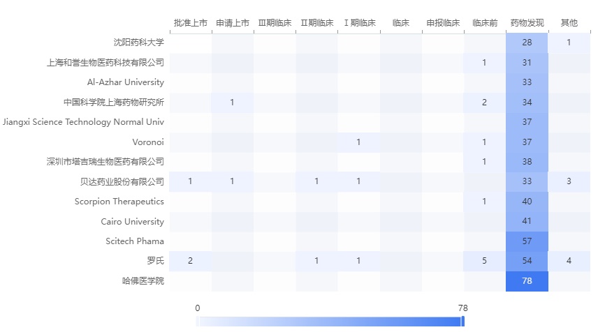 除了热力图,【靶点格局数据库】还支持堆叠柱状图、饼状图、柱状图等多种可视化展示,大家可根据各自习惯和需求选择不同的图表进行查看。