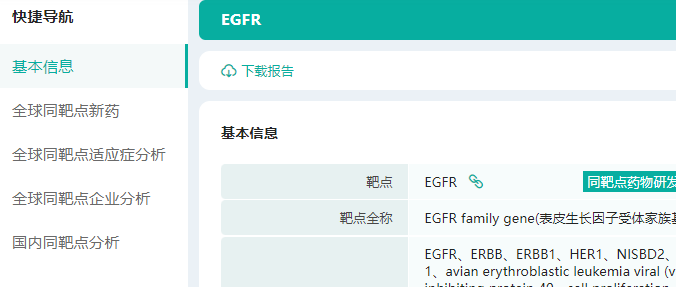 接下来,我们以EGFR靶点为例,带大家认识一下药融云【靶点格局数据库】。