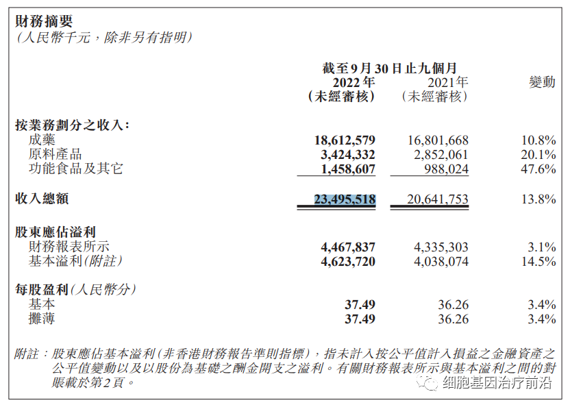 11月23日,石药集团公布,截至2022年9月30日止九个月,集团的收入为234.96亿元,增加13.8%。股东应占基本溢利46.24亿元,同比上升14.5%。