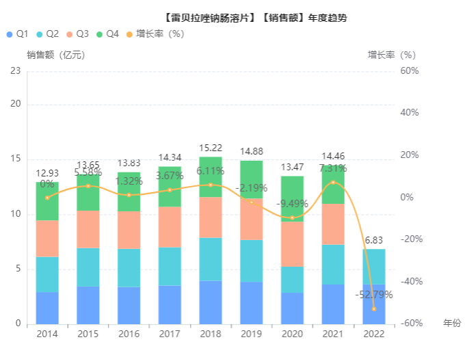 作为质子泵抑制剂类,雷贝拉唑钠存在酸不稳定问题,其肠溶制剂的开发以及BE试验均具有一定的挑战度。其中济川药业的雷贝拉唑钠肠溶胶囊市场占有率排名第一,且领先规模优势常长年保持,此次又拿下了雷贝拉唑钠肠溶制剂新品种的过评,或将再加大济川药业在该40亿大品种市场内已有的优势,进一步拓宽市场。