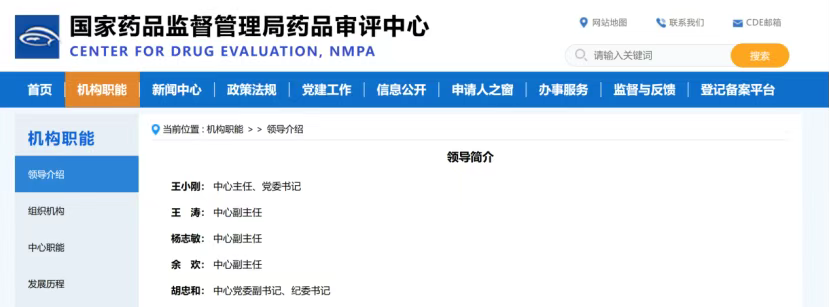 国家药品监督管理局药品审评中心(CDE)官网日前显示,王小刚已任中心主任、党委书记。