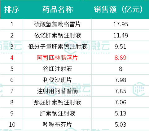 据药融云统计,今年抗血栓药物市场新添了3款首仿药,分别是海南先声药业的甲苯磺酸艾多沙班片、成都欣捷高新的盐酸替罗非班注射液以及乐普药业的氯吡格雷阿司匹林片。