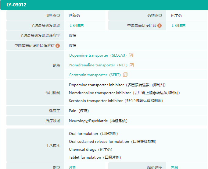 LY03014是一种新型的小分子Gi蛋白偏向性阿片受体(MOR)激动剂,拟用于手术后中到重度疼痛和癌性爆发痛的治疗。这是绿叶制药基于其新分子实体/新治疗实体技术平台(NCE/NTE)自主研发的1类神经系统新药,用于镇痛。