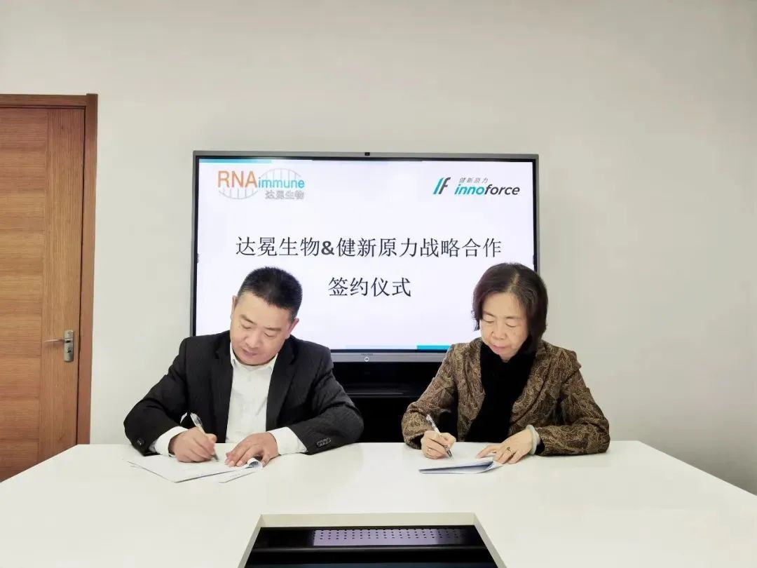 浙江健新原力制药有限公司(Innoforce,以下简称“健新原力”)宣布与达冕生物(RNAimmune,以下简称“达冕生物”)签署战略合作协议,为其mRNA研发管线提供包括DNA质粒制备、mRNA IVT原液工艺研究、LNP包封工艺开发、mRNA IVT原液和LNP包封(脂质纳米颗粒)制剂生产、IND中美双报相关文件撰写等服务。