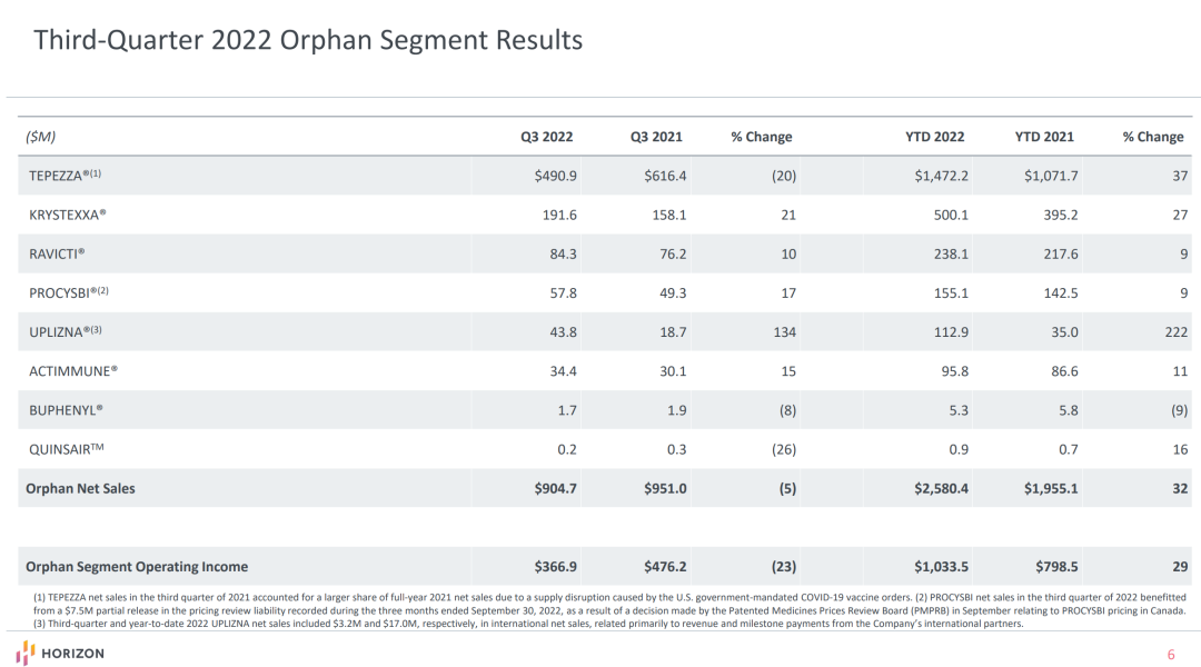 --上市公司财报信息HZNP 3Q22 Financial Results_11.02.22 (horizontherapeutics.com),https://ir.horizontherapeutics.com/static-files/b3e39f27-2ed6-4c37-843a-d17b24e1b8b8