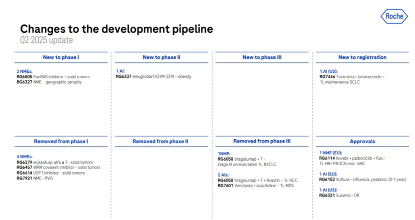 这款CT-173是来自罗氏在2023年底以27亿美元收购Carmot Therapeutics时带来的一款产品。CT-173是一种长效PYY类似物,罗氏原计划在今年启动I期临床试验。但是随着25年H1年报的发布,其宣布了由于改款药物开发潜力和竞争力未达标准故而放弃开发。