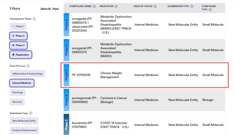 近期辉瑞又确认终止其最后一款GLP-1受体激动剂PF-06954522的研发,随着三款GLP-1药物相继出局,辉瑞目前在肥胖症领域仅剩处于2期临床阶段的GIPR拮抗剂PF-07976016。