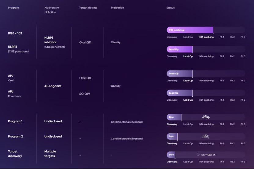 目前BioAge现转向NLRP3通路抑制剂BGE-102,计划2025年下半年启动I期试验。