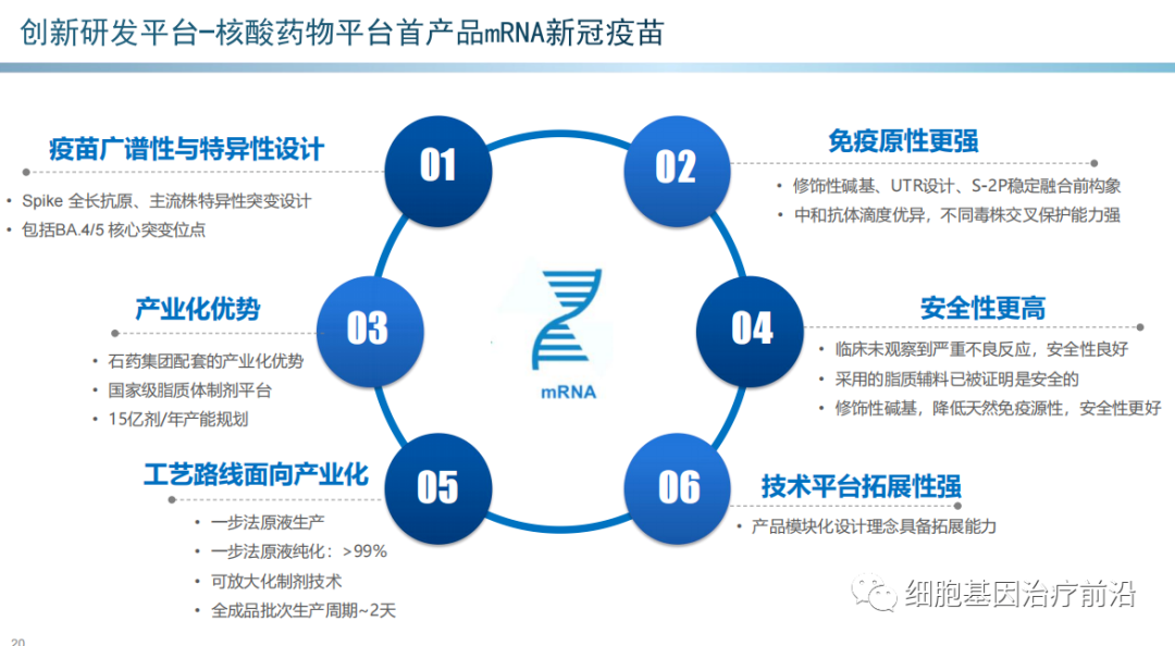 沃森生物:mRNA新冠疫苗目前国内处于III期。2022年9月30日公司新型冠状病毒mRNA疫苗获得印度尼西亚紧急使用授权(“EUA”),系我国自主研发的首个获批海外上市的新冠mRNA疫苗,用于18岁及以上人群基础免疫或加强免疫。公司还在积极布局mRNA技术平台:和蓝鹊生物合作的新冠变异株mRNA疫苗正在滚动提交临床申请资料;和艾博生物合作的带状疱疹mRNA疫苗、和蓝鹊生物合作的RSV mRNA疫苗和流感mRNA疫苗、和圣诺合作的通用流感siRNA药物处于临床前研究。