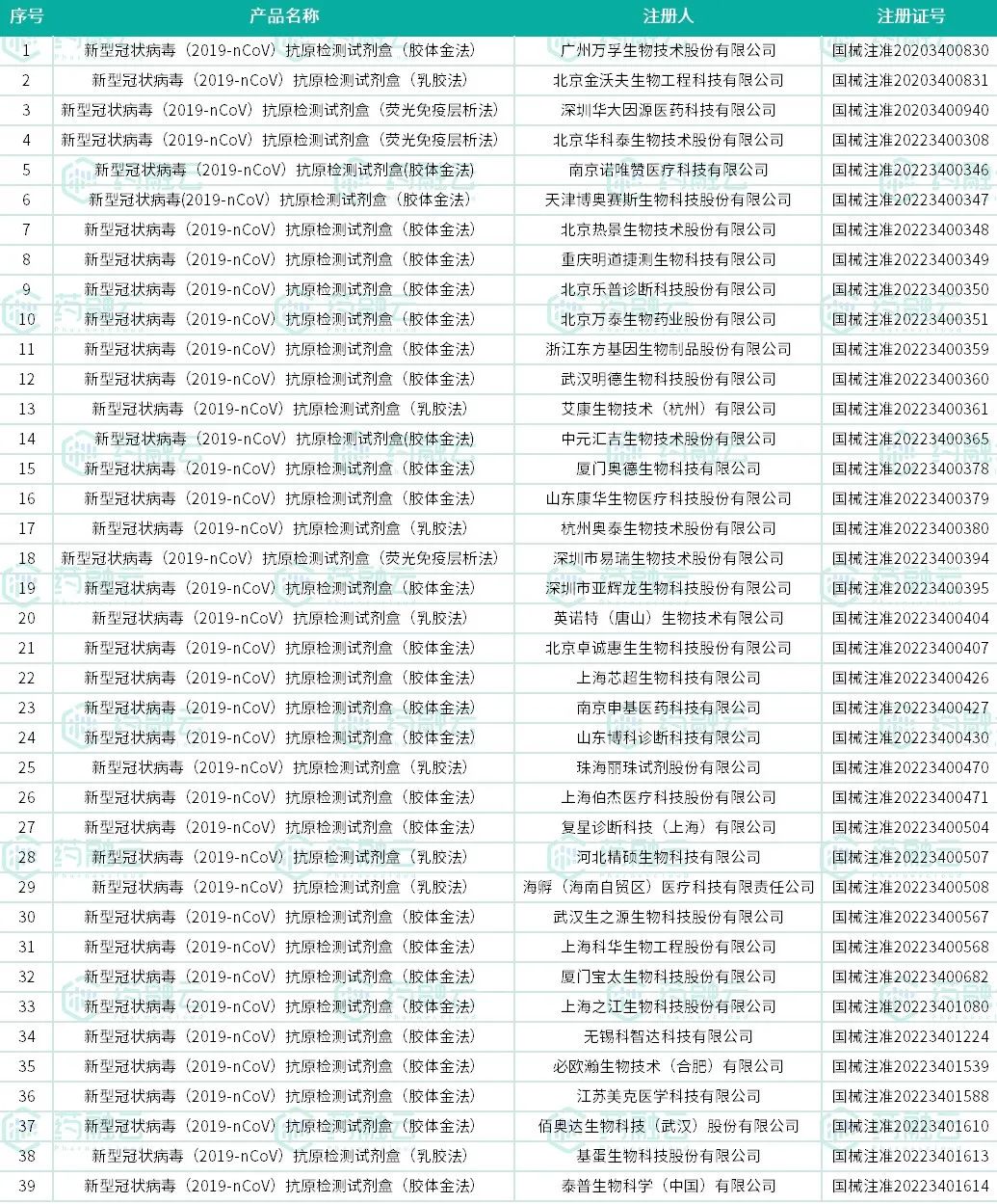 近日,经国家药监局审查,批准佰奥达生物科技(武汉)股份有限公司、基蛋生物科技股份有限公司和泰普生物科学(中国)有限公司3个企业的3个新冠病毒抗原检测试剂产品。截至目前,NMPA已批准39个新冠病毒抗原检测试剂产品。
