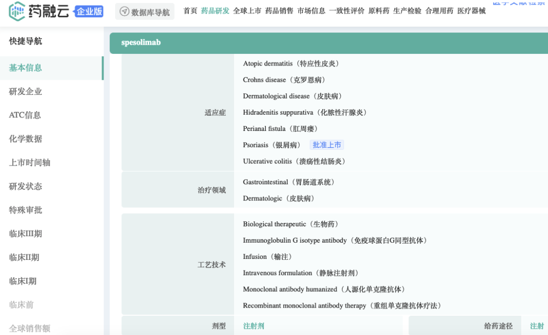 据药融云数据库查询显示,Spesolimab由勃林格殷格翰(BI,Boehringer Ingelheim)开发,相关专利:WO-2013074569。