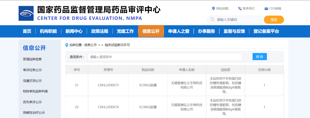 据药融云统计,智康弘义递交的SC0062胶囊新药临床申请是于2022年9月15日被CDE承办,到此处顺利获批临床,共用时95天。