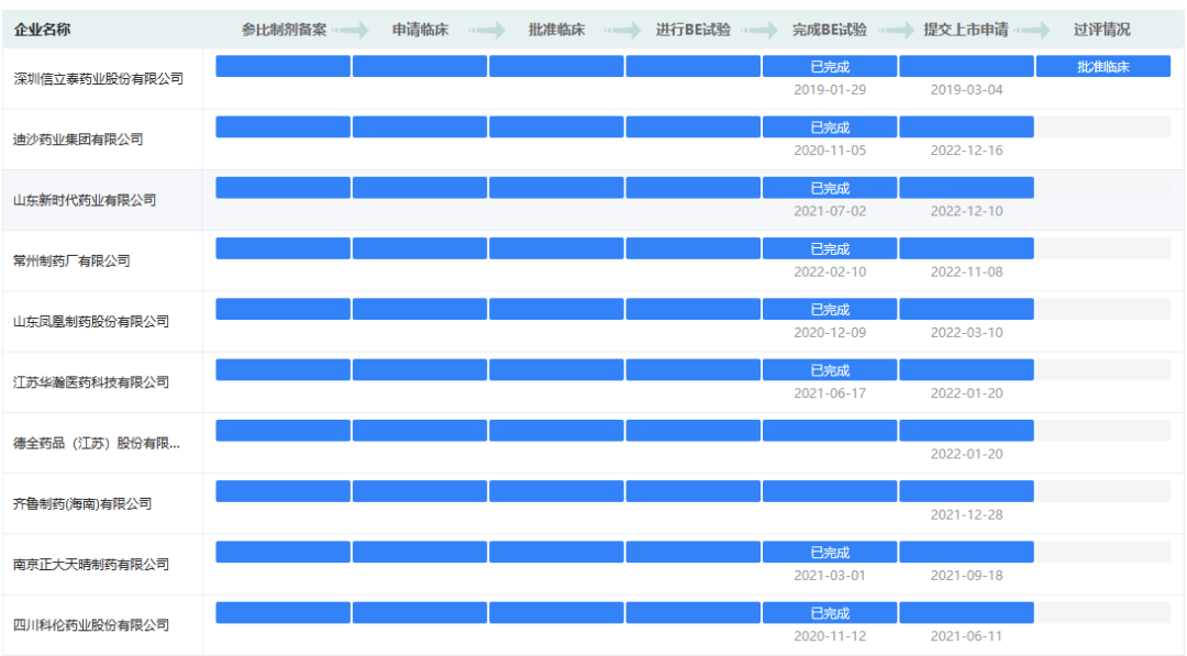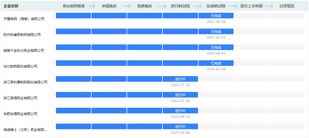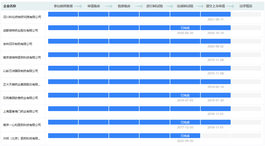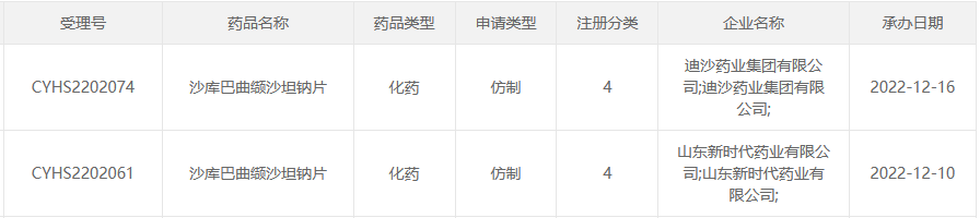 各药企沙库巴曲缬沙坦钠片一致性评价进度