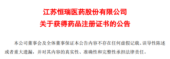 近日,恒瑞医药发布公告,收到国家药品监督管理局核准签发的《药品注册证书》,批准公司1类创新药注射用甲苯磺酸瑞马唑仑(商品名:瑞倍宁®)增加“支气管镜诊疗麻醉”适应症,说明书中适应症表述写为“非气管插管手术/操作中的镇静和麻醉”。这也是该恒瑞医药创新药品种自2019年12月上市以来获批的第四项适应症。