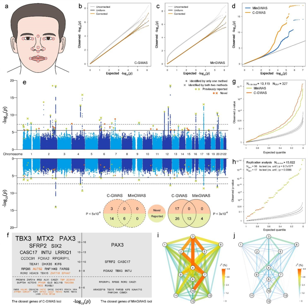 人类面部形态代表了一组多维、可遗传且相互关联的复杂表型。作者应用C-GWAS集成分析了78个面部形态的GWAS,结果显示C-GWAS的检出率是传统方法的3倍,并发现了17个影响脸型的新遗传位点。