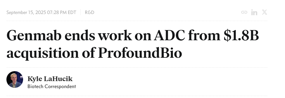 去年4月,Genmab以18亿美元的价格收购普方生物 ,此次收购使Genmab获得普方生物下一代ADC候选药物组合的全球授权,包括三个临床阶段管线和多个临床前管线。其中三款临床阶段产品为Rina-S、PRO1160和PRO1107。