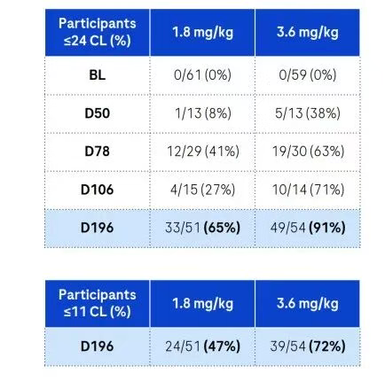数据主要来自队列3(1.8 mg/kg)和4(3.6 mg/kg)的患者,共计149人。
