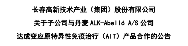 9月18日,长春高新发布公告,其控股子公司——长春金赛药业与丹麦ALK-AbellóA/S公司达成变应原特异性免疫治疗(AIT)产品合作,将在中国联合开发并商业化ALK的屋尘螨(HDM)变应原特异性免疫治疗产品,并获得ALK自主开发的3款产品在中国大陆范围内的独家代理权益。