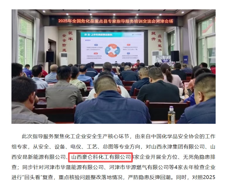 据运城市应急管理局消息,8月25日至29日,国家危险化学品重点县检查组深入河津市化工生产企业,开展为期5天的专家指导服务。消息显示由来自中国化学品安全协会的工作组专家,对包括山西豪仑科化工有限公司在内的3家企业开展全方位、无死角隐患排查。