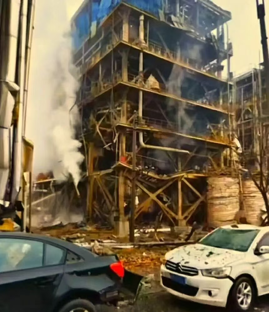 现场情况:有居民反映事故发生时传出巨响,爆炸导致周边部分村庄房屋的玻璃被震碎。网传视频也显示现场有建筑构件严重变形、外墙扭曲、瓦砾散落,并有停靠附近的车辆被压毁。