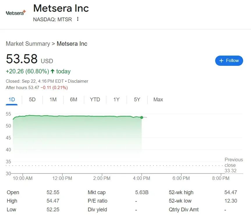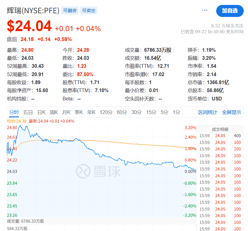 辉瑞将向Metsera支付每股47.50美元现金,若达到某些业绩里程碑,还将再支付每股22.50美元,公司估值最高可达73亿美元。受此消息的影响,Metsera股价大涨,盘中一度涨超62%,最终仍收涨逾60%,市值达到约56亿美元。