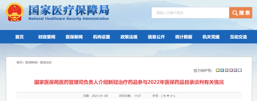 1月8日,国家医保局发布消息,由国家医保局医药管理司负责人介绍了新冠治疗药品参与2022年医保药品目录谈判有关情况。