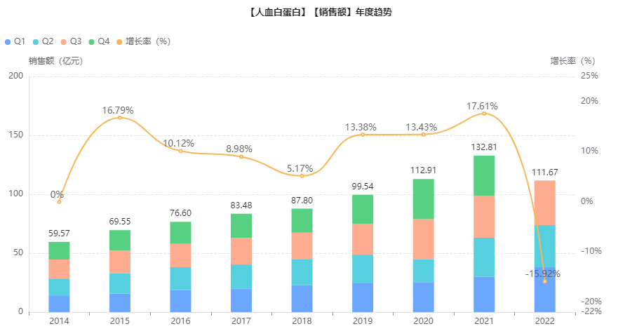 根据药融云全国医院销售数据显示,人血白蛋白相关制剂的2021年院内销售额约133亿元,2022Q1-Q3院内销售额约112亿元,预计2022整年院内销售额将突破150亿。此次将该品种纳入重点监控合理用药目录,对该品种销售将产生巨大影响。