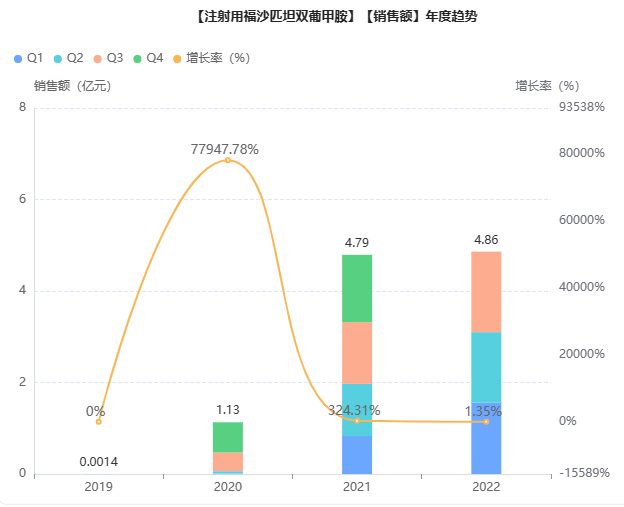 据药融云数据库显示,在消化系统领域,人福药业还递交了富马酸伏诺拉生片的4类仿制药上市申请。该品种是武田的新型抑酸药,主要用于治疗反流性食管炎,2022年前三季度院内销售额超3亿,同比增长285%。国内首仿由山东新时代药业斩获,人福药业有望冲刺国产第2家。