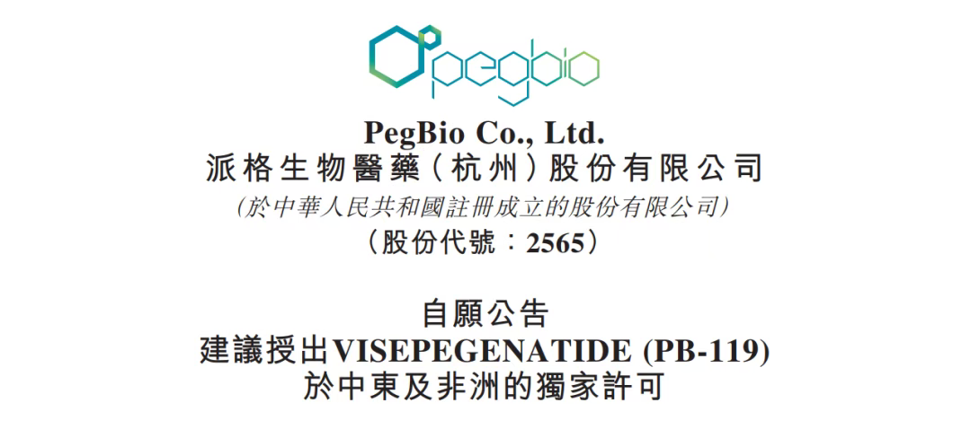 刚刚,派格生物医药(杭州)股份有限公司发布公告,公司已与阿拉伯联合酋长国的PDC FZ-LLC订立一份不具约束力的条款清单,内容有关公司产品Visepegenatide (PB-119)(一种用于治疗二型糖尿病及体重管理的皮下注射型GLP-1受体激动剂)的独家许可。