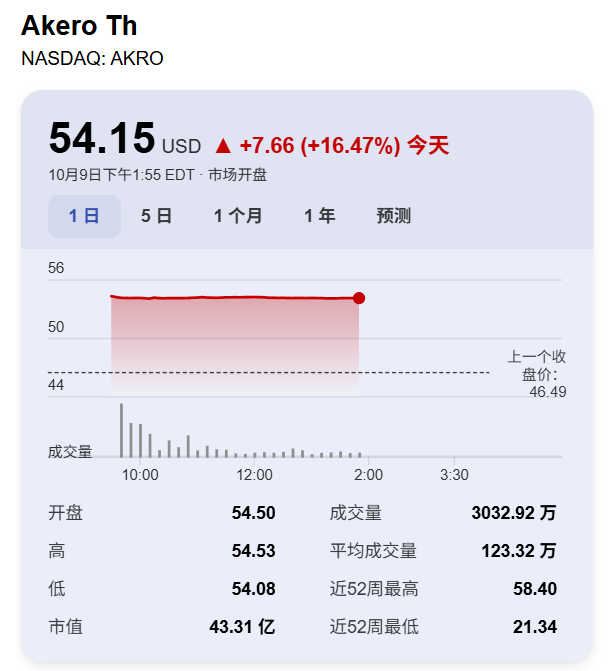 这是诺和诺德新任首席执行官Mike Doustdar自7月上任以来的首个重大交易,凸显其提振销售增长、抵御来自美国竞争对手礼来压力的决心。交易消息公布后,市场反应迅速:Akero较周三收盘价溢价约16%。
