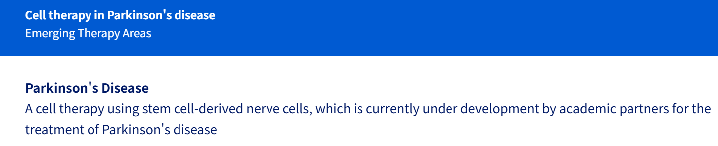 2022年,诺和诺德就已资助和支持帕金森病在研干细胞疗法STEM-PD的临床研究。该疗法2022年10月已获得监管部门批准,用于I/IIa期临床试验。STEM-PD项目由瑞典隆德大学Malin Parmar教授团队领导,临床前和临床研究由国家和欧盟资助机构资助,此试验由斯科讷大学医院、剑桥大学、剑桥大学医院和伦敦帝国理工学院合作完成。