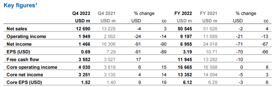 2月1日,诺华2022年报发布:全年营收505.45亿美元,同比增长4%(按照固定汇率),净利润69.55亿美元,下降71%(按照固定汇率)。其中创新药板块总营收为413亿美元,同比增长4%(按照固定汇率),主要是由Entresto、Kesimpta、Kisqali、Pluvicto和Cosentyx的持续强劲增长推动的。山德士的全年销售额为92亿美元,同比下降2%,分拆计划预计在2023年下半年继续进行。