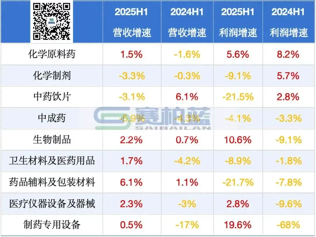 中国医药企业管理协会公布的2025年上半年医药工业情况数据显示,在9个子行业中,化学制剂、中成药和中药饮片这三大领域营收与利润增速均出现了双双下滑,且与2024年同期相比,下滑趋势更为明显。